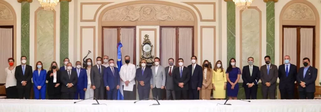 SANTO DOMINGO.- El Presidente Luis Abinader y la vicepresidenta de la República, Raquel Peña, recibieron en el Palacio Nacional a la nueva junta de directores del Consejo Nacional de la Empresa Privada (CONEP) para el período 2021-2023.