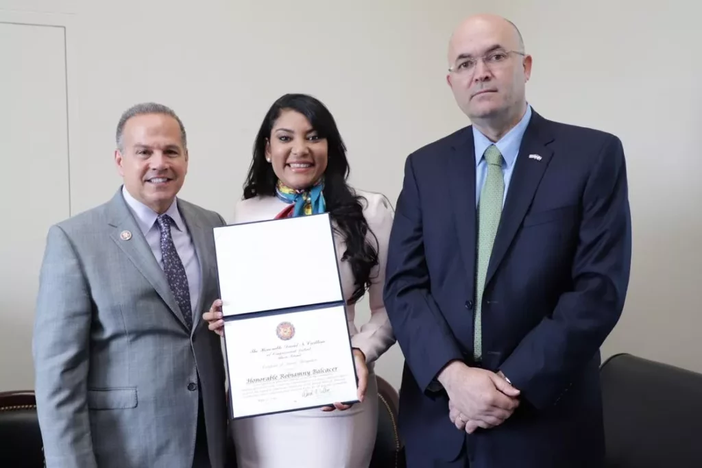 El congresista norteamericano reconoció el liderazgo de la ministra Balcácer y dijo que era muy admirada por los miembros de su distrito.