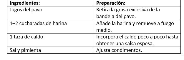 Gravy casero: salsa realizada a partir de los jugos del pavo, harina y caldo.