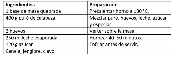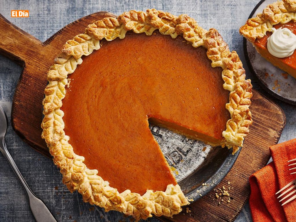 Tarta de calabaza (pumpkin pie): postre emblemático hecho con puré de calabaza y especias tradicionales.