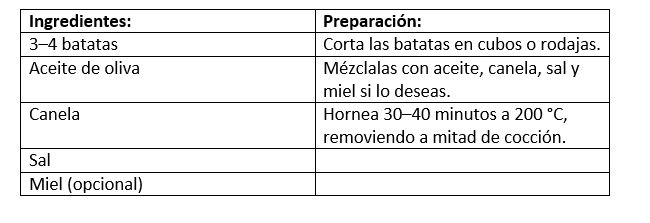 Batatas al horno con canela: preparadas con aceite de oliva, miel y especias, o en versión de puré.
