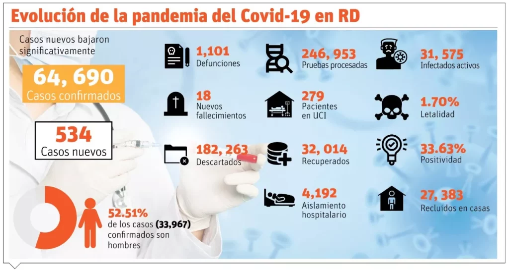 Mientras eso sucede, el ministro de Salud Pública, Rafael Sánchez Cárdenas, no dejó claro si hay disponibilidad o no en los centros de salud del Gran Santo Domingo, pues al dar lectura al boletín 131 sobre el coronavirus, dijo que la ocupación estaba al 100% con 631 hospitalizados.
