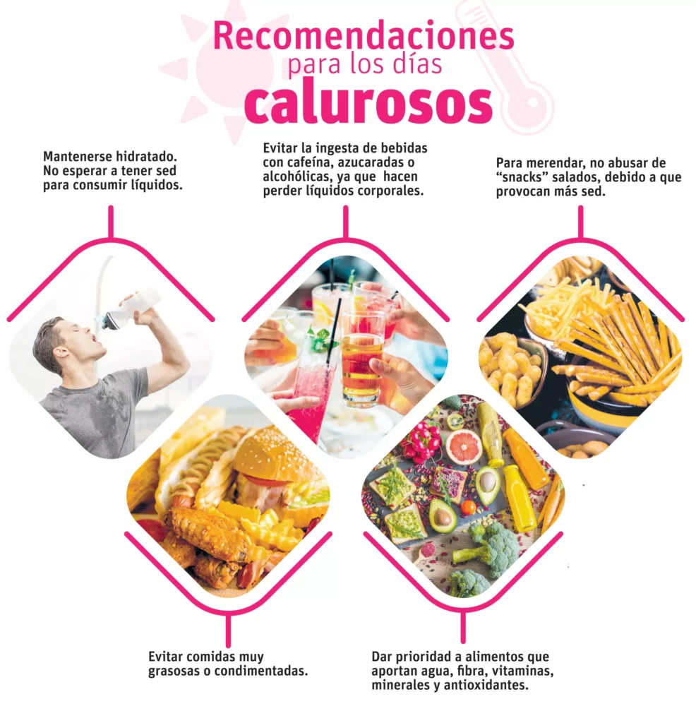 Sostiene, además, que es importante evitar las grasas y los hidratos de carbono, debido a que las altas temperaturas provocan que, en muchas ocasiones, nos sintamos más cansados, irritados y sin ganas de realizar ningún tipo de actividad física.