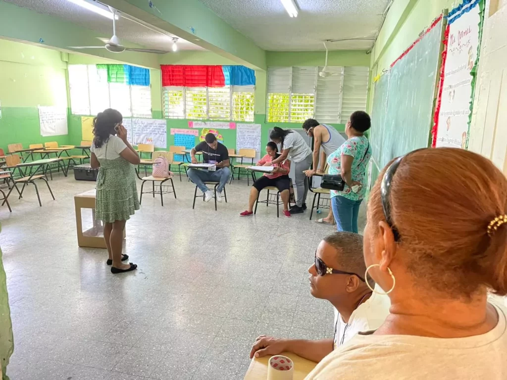 El proceso es bastante ágil y rápido para los participantes, a quienes se les verifica con la cédula a través de una aplicación en un celular, se identifica en el padrón donde le corresponde, luego se les envía a una computadora, se les indican los pasos, en caso de que no lo conozca, elige su candidato, la máquina le emite un ticket que se deposita en la urna y finalmente se firma en el padrón.