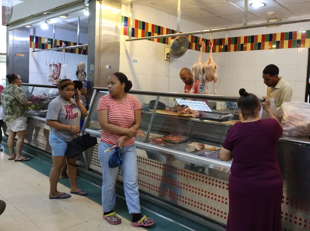 Germosén explicó que, antes de la crisis, vendía entre 700 y 800 libras de pollo al día, pero ahora apenas recibe 140 libras.