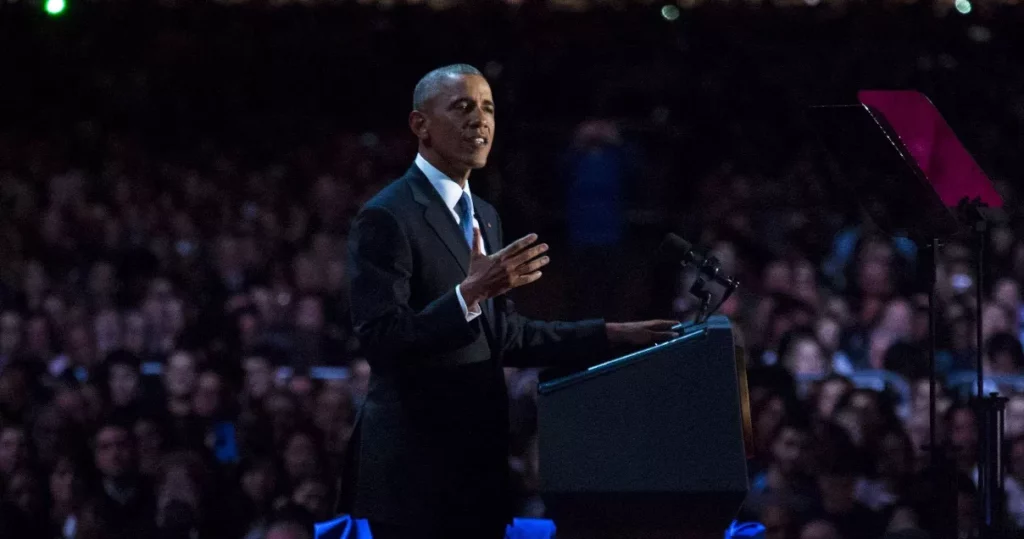 El discurso de Obama en horario de máxima audiencia fue una apelación al compromiso político tras unas agotadoras elecciones ganadas por el republicano Donald Trump, quien ha convertido en el centro de su campaña deshacer los logros de Obama.