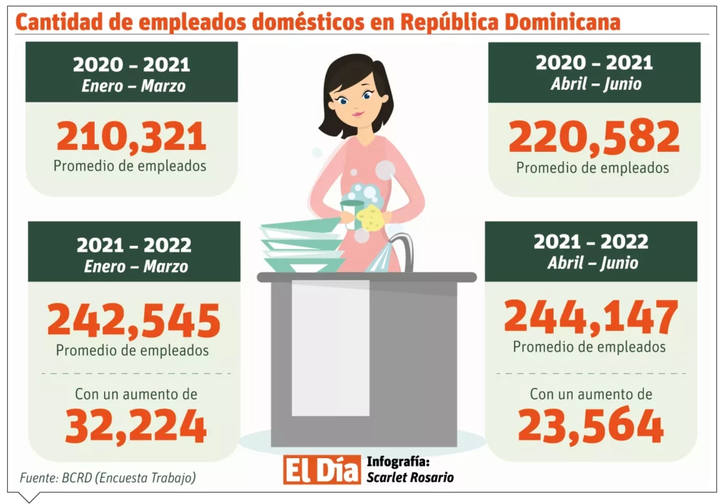 Otro problema que advierte Alburquerque es que hay trabajadoras domésticas que tienen comida y dormida en la casa, mientras otras van dos días o tres a la semana y algunas que van algunas horas al día.