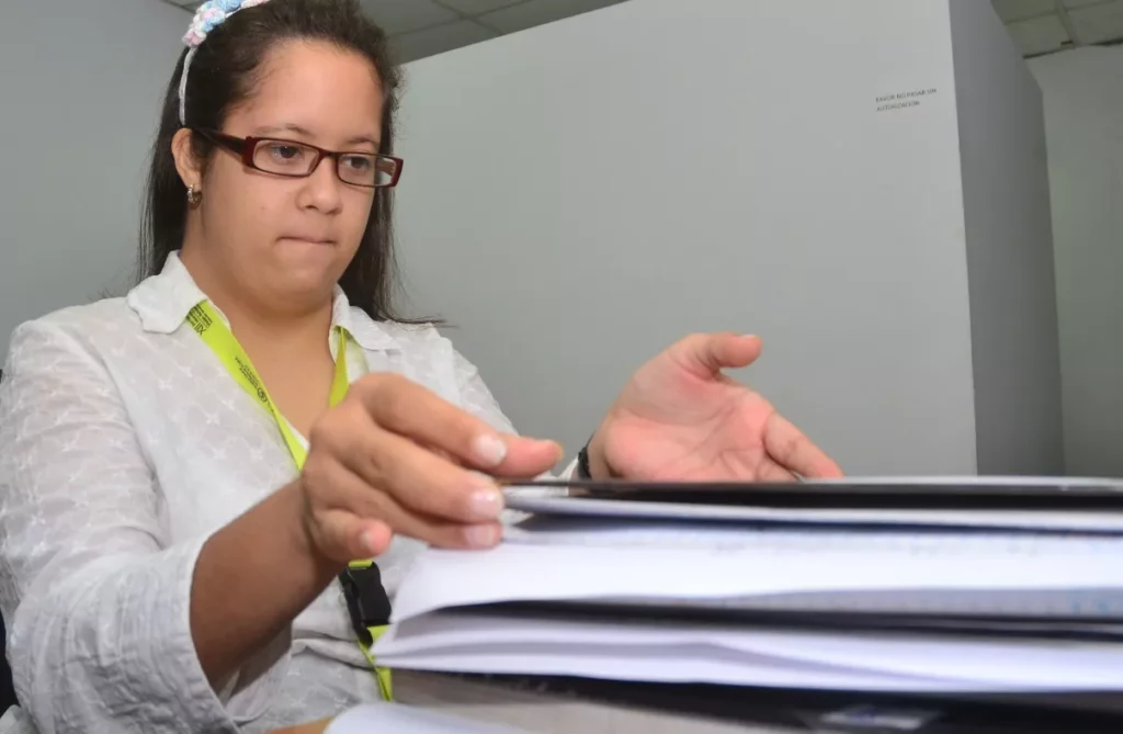 Son las palabras de Ana Mirian Ceballos, de 19 años, con síndrome de Down, encargada tramitar la agenda de trabajo a los diferentes departamentos del Instituto Nacional de Agua Potable y Alcantarillados (Inapa) , la primera institución del Estado que ofrece la oportunidad a personas discapacitadas.