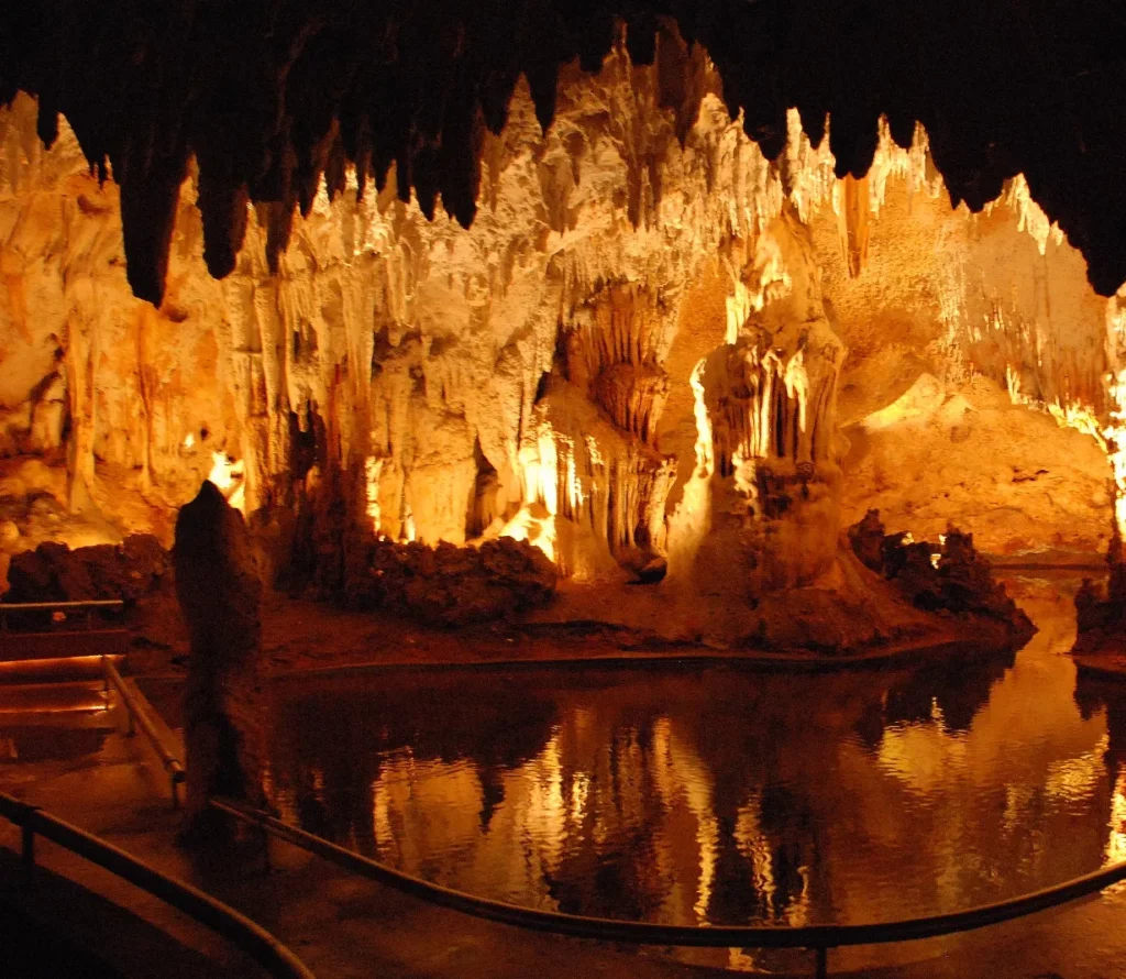 La fabulosa belleza de la cueva es reflejada a través del agua del lago artificial, que revela la majestuosa creatividad de los taínos.