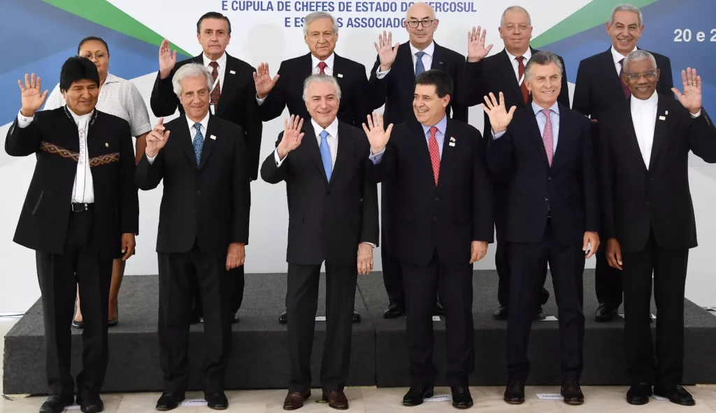 La firma del acuerdo se concretó durante un almuerzo que el presidente brasileño, Michel Temer, ofreció como anfitrión de la cita a los mandatarios de Argentina, Mauricio Macri, Uruguay, Tabaré Vázquez, y Paraguay, Horacio Cartes, quien en esta Cumbre asumió la presidencia semestral del bloque.