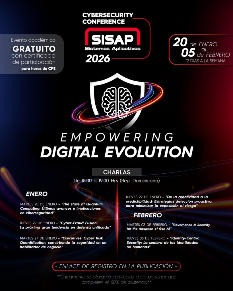 República Dominicana – En un entorno digital en constante transformación, donde las amenazas cibernéticas evolucionan con mayor rapidez y sofisticación, se celebrará el Cybersecurity Conference 2026, el evento académico anual presentado por Sistemas Aplicativos (SISAP), que busca conectar a líderes, profesionales y entusiastas de la ciberseguridad de la región.