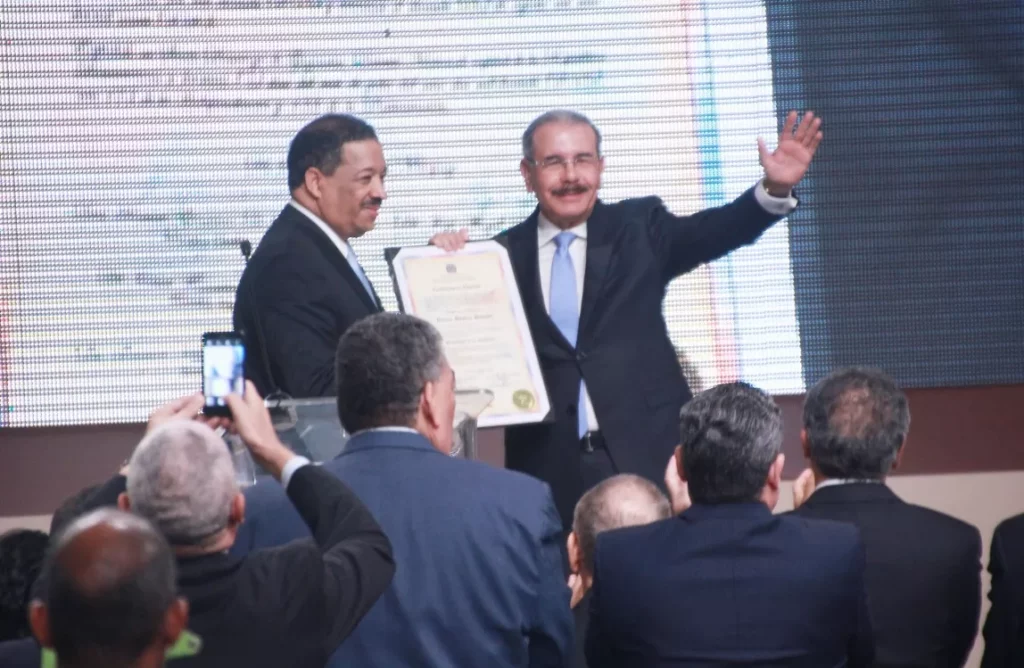 Danilo Medina recibió el certificado que lo acredita como el ganador de las pasadas elecciones presidenciales, de manos del presidente de la Junta Central Electoral, Roberto Rosario.