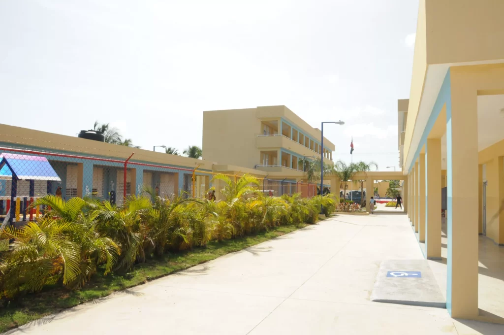 El nuevo centro educativo, de 27 aulas está ubicado en el sector Los Frailes I, del kilómetro 11 de la autopista Las Américas y cuenta con laboratorio de informática, rincones tecnológicos, biblioteca, área administrativa equipada, así como comedor y cocina.