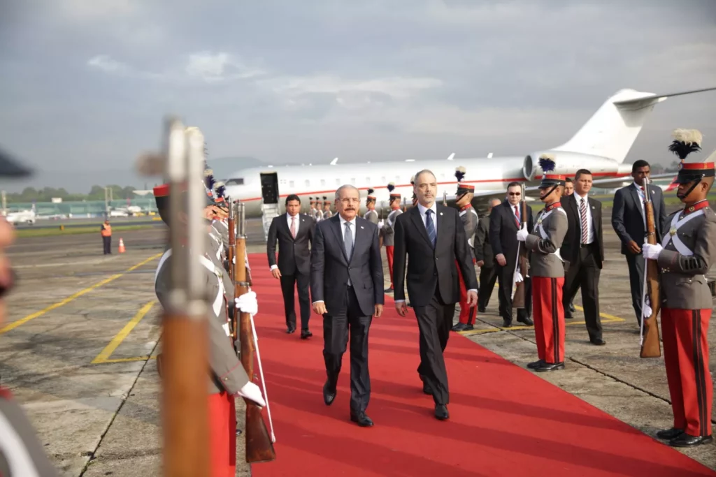 La llegada del jefe de Estado dominicano se produjo por el Comando Aéreo Central (CACEN) de la Fuerza Aérea Guatemalteca, donde fue recibido por Luis Fernando Carranza, viceministro de Relaciones Exteriores, y José Osvaldo Leger, embajador de la República Dominicana en Guatemala.