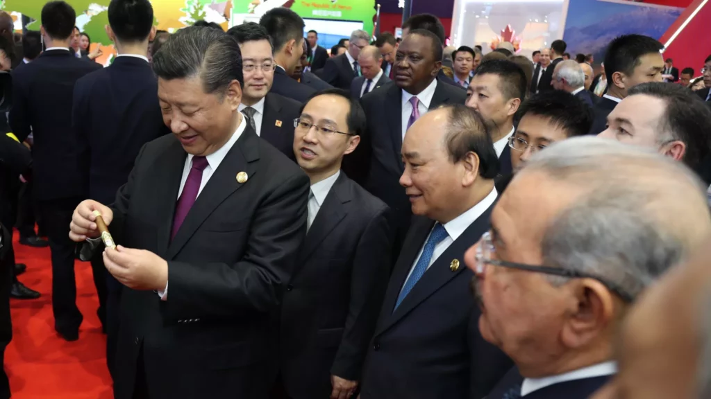 El presidente chino se interesó por los cigarros, la yuca, la piña y otros productos dominicanos.
