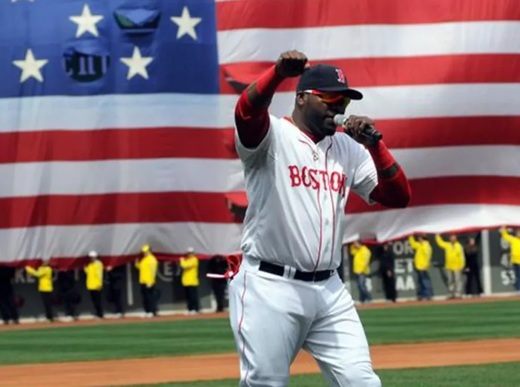 Mientras los Red Sox honraban a los socorristas, Ortiz tomó el micrófono y le dijo a los fanáticos: “Nadie va a dictar nuestra libertad”, logrando una fuerte ovación de la multitud.