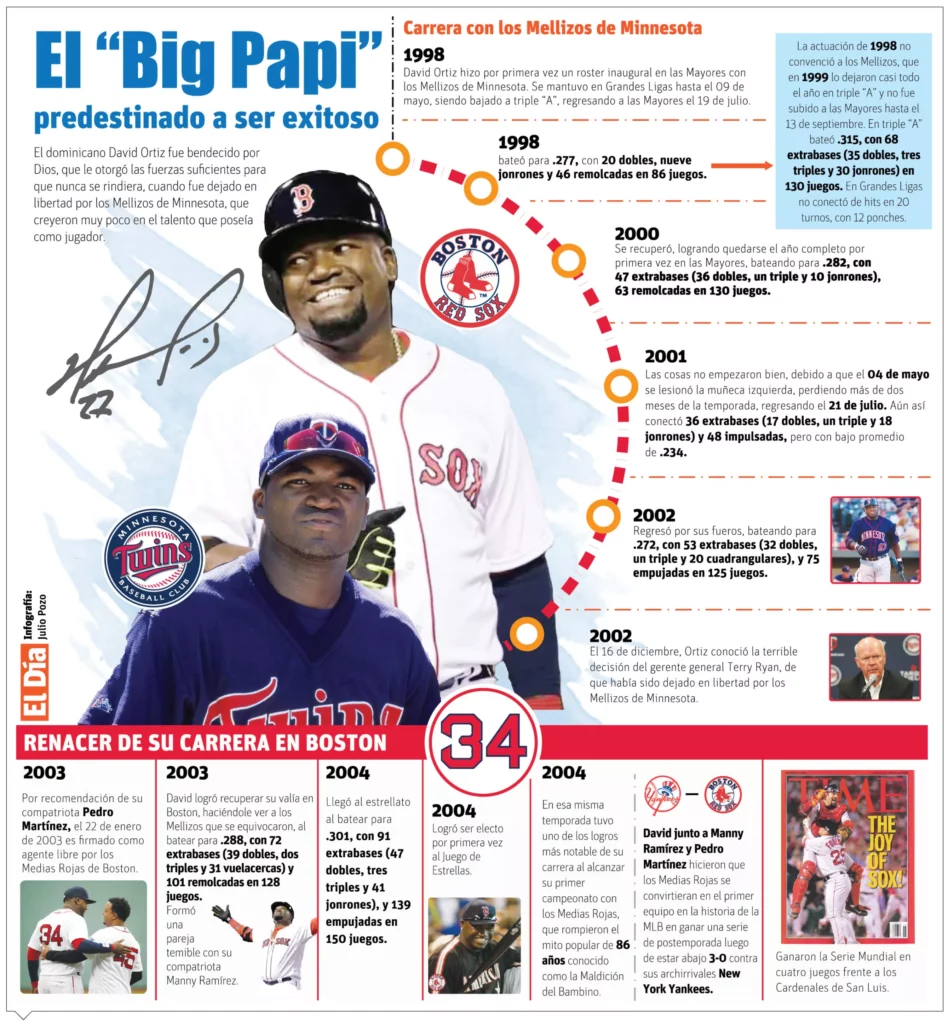 Santo Domingo.- El dominicano David Ortiz logró triunfar en las Grandes Ligas teniendo que imponerse a las adversidades, que les llegaron durante su estadía con los Mellizos de Minnesota.