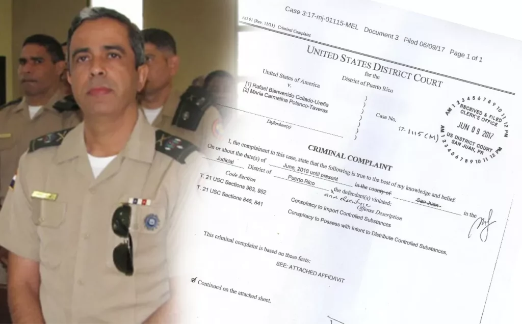 “Basado en lo anterior, creo que hay causa probable que el coronel dominicano Rafael Bienvenido Collado Ureña y María Carmelina Polanco Taveras cometieron ofensas de crímenes federales en la violación del título 21 del Código de los Estados Unidos”, explica la última parte del expediente. La acusación, firmada por el agente especial de la DEA, David Flores, consta de 10 puntos.