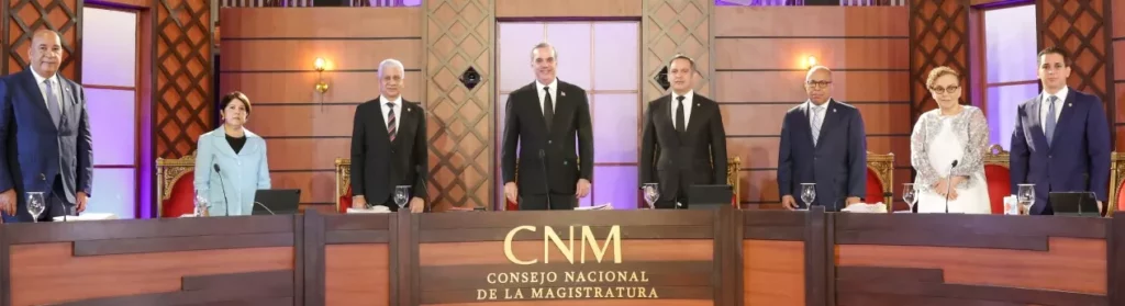 La sesión del CNM inicialmente estuvo encabezada por el presidente Luis Abinader y los demás miembros y posteriormente presidida por la vicepresidenta Raquel Peña.