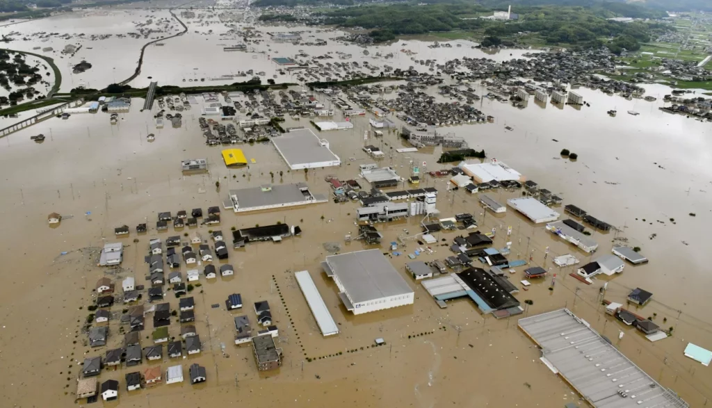Las lluvias torrenciales también afectaron la red de transporte, con la suspensión de los servicios del tren bala (Shinkansen) en casi todo el territorio, así como a la actividad comercial y empresarial.