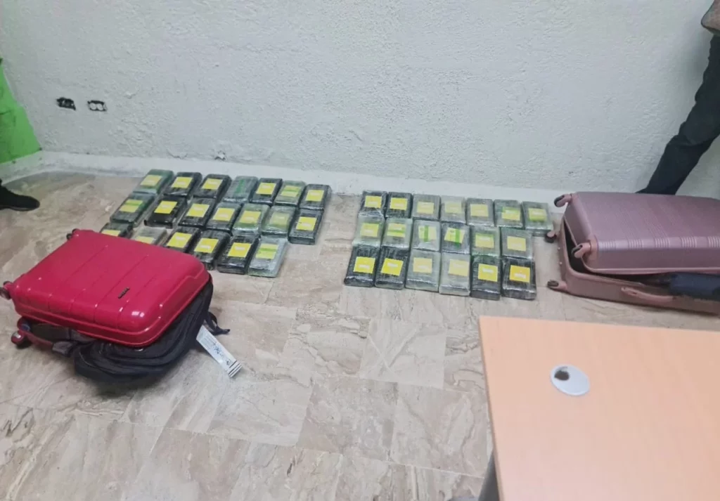 En presencia de un fiscal, se procedió a abrir el equipaje, ocupando en dos maletas, cuatro mochilas en cuyo interior se confiscaron un total de 39 paquetes de la sustancia, con un peso preliminar de 41 kilogramos.