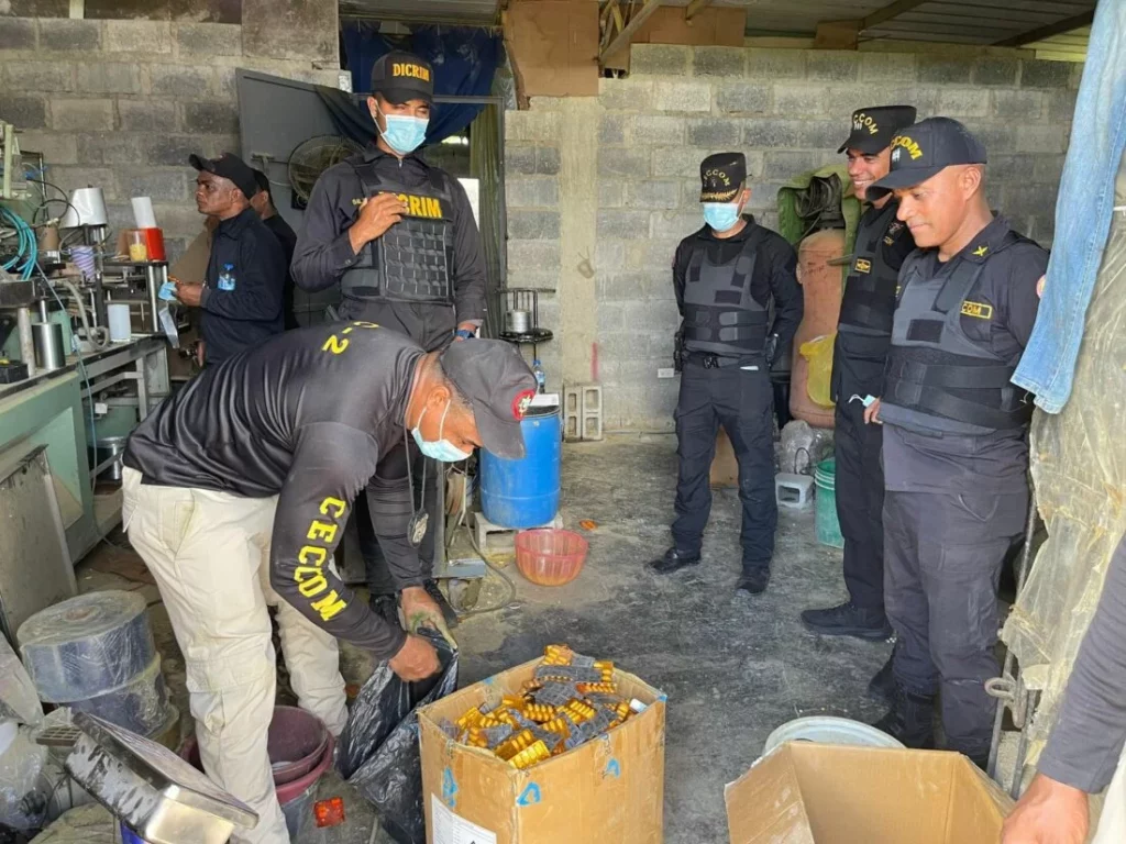 SANTO DOMINGO.– El Ministerio Público, junto a la Policía Nacional, el Cuerpo Especializado de Control de Combustibles (CECCOM) y la Dirección Central de Investigación (DICRIM), luego de una investigación de inteligencia, desmantelaron una banda criminal que se dedicaba a la venta, fabricación y falsificación de medicamentos, en el distrito municipal La Guayiga, de Santo Domingo Oeste.
