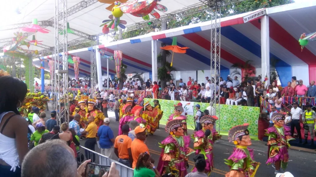 El ministro de Cultura, Pedro Vergés, observa el desfile desde una gigantesca tarima el paso de las comparsas, junto a decenas de invitados especiales, entre funcionarios y diplomáticos.