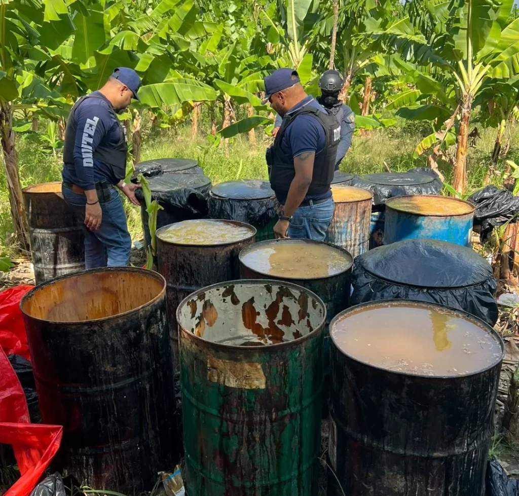 Navarrete, Santiago.- Agentes de la Subdirección Regional Cibao Central de Inteligencia (DINTEL), en coordinación con el equipo SWAT, la Policía Preventiva, el Cuerpo Especializado de Control de Combustibles (CECCOM) y el Ministerio Público, desmantelaron un laboratorio clandestino de fabricación de clerén en el sector Pontón del municipio de Navarrete, provincia Santiago, donde resultaron detenidos dos nacionales haitianos sorprendidos en flagrante delito.