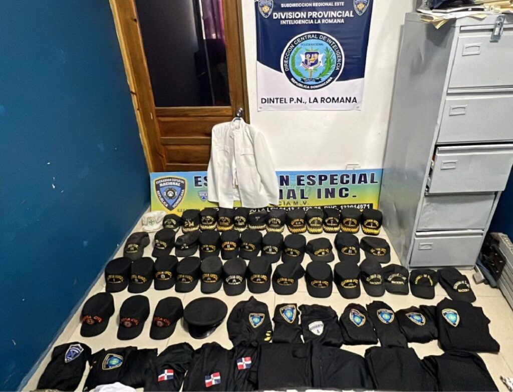 Durante la requisa, las autoridades incautaron indumentaria y objetos utilizados para la falsificación y suplantación de identidades, entre ellos: una gorra con rango de general, otras gorras de distintos rangos, uniformes y prendas con inscripciones del “Escuadrón Especial Nacional”, “Policía Comunitaria”, así como material logístico de la Academia de Bomberos y del Voluntariado Nacional.