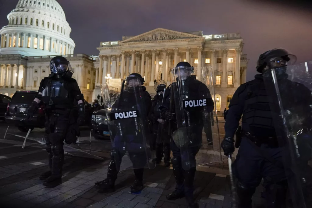 Una persona fue herida de bala; se desconoce su estado. El jefe de policía Robert Contee calificó el ataque como un motín. Mientras caía la noche, los agentes de la ley se abrían paso hacia los manifestantes, usando granadas aturdidoras para intentar despejar la zona alrededor del Capitolio. Grandes nubes de gas lacrimógeno eran visibles.