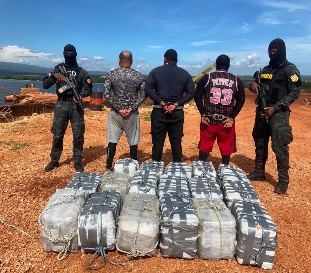 Al abordar la embarcación las autoridades apresaron a tres hombres (dos dominicanos y un colombiando) y ocuparon 17 pacas conteniendo en su interior los 414 paquetes de la sustancia, envueltos en cinta adhesiva.