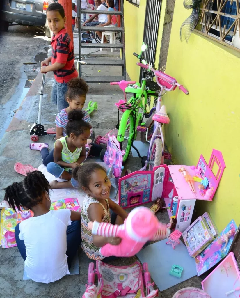 Entregó regalos y golosinas en distintos sectores de Santo Domingo Oeste a más 200 niños.