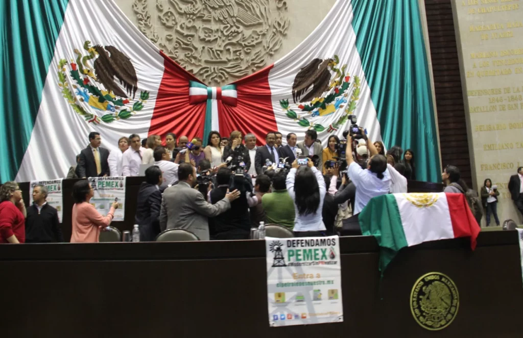 La medida se produjo en protesta por la reforma energética que fue aprobada el miércoles por el Senado y enviada el jueves a la Cámara de Diputados, en el Palacio Legislativo de San Lázaro.
