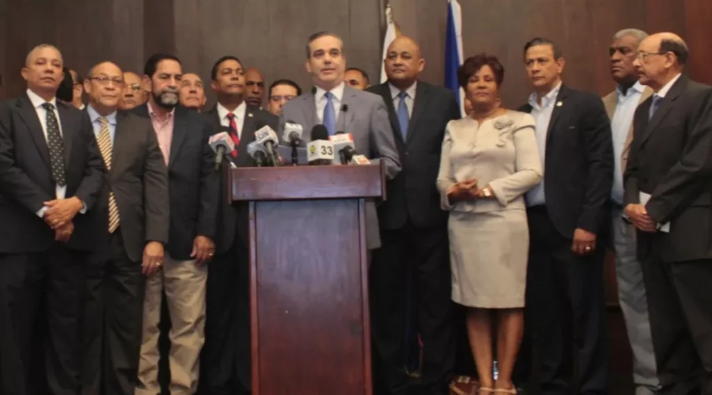 Abinader estaba acompañado de una amplia representación de los diputados de esa organización opositora.