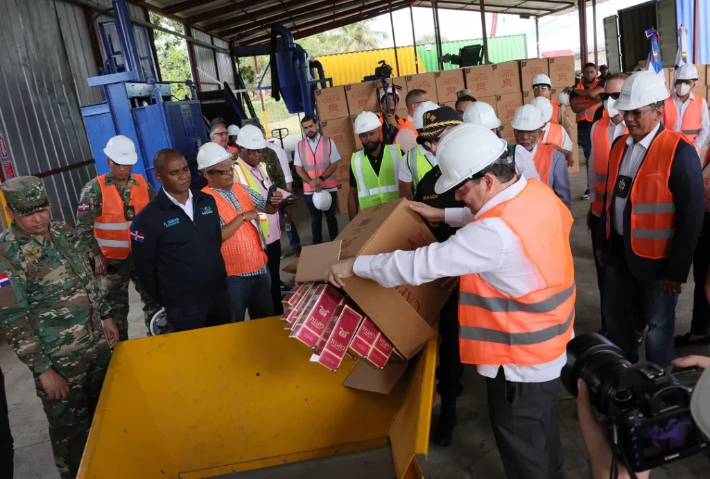 Santo Domingo. – La Dirección General de Aduanas (DGA) destruyó este jueves 19 millones 186 mil 309 cigarrillos incautados en distintos pasos fronterizos, puertos y aeropuertos del país, al intentar ser introducidos ilegalmente.