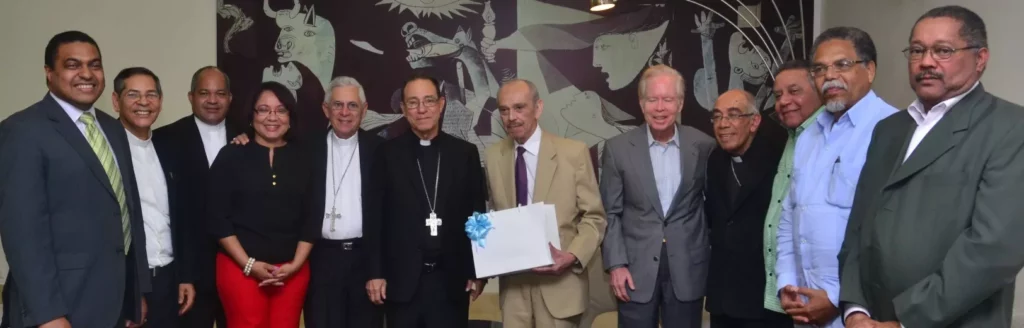 El prelado estuvo acompañado de los obispos José Dolores Grullón, vicepresidente de la Conferencia y obispo de San Juan de la Maguana; Julio César Corniel, obispo de la diócesis de Puerto Plata; Jesús María de Jesús Moya, obispo emérito de San Francisco de Macorís; el padre Carmelo Santana, secretario general de la Conferencia, y Micher Sandoval, directora de prensa de la entidad colegiada.