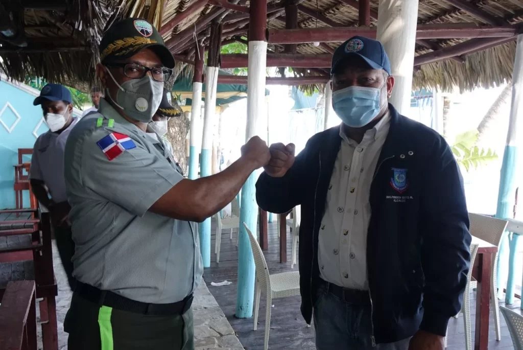 El general de brigada se reunió con el alcalde de Bocha Chica, con los comerciantes del lugar, ciudadanos y con los policías de tránsito que participan en el operativo de Semana Santa 2021.