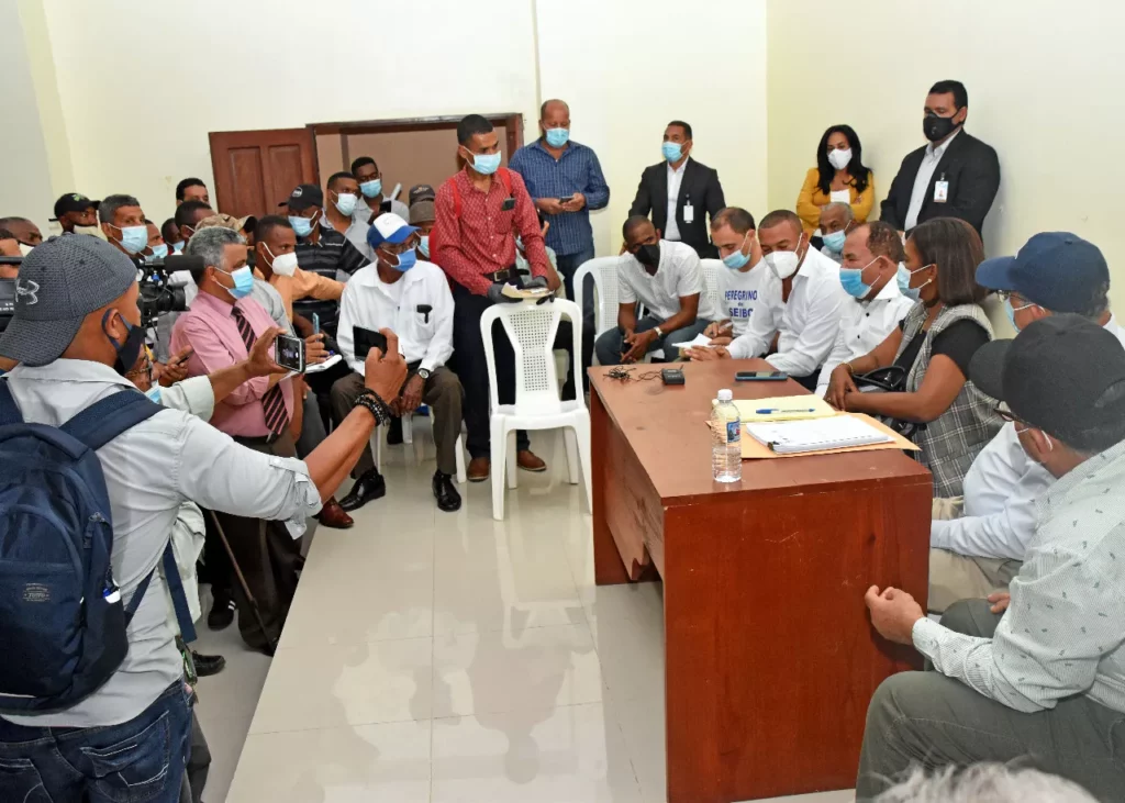 EL SEIBO.- El director ejecutivo de Bienes Nacionales y del Consejo Estatal del Azúcar (CEA), César Cedeño, junto a su homólogo del Instituto Agrario Dominicano (IAD), Leonardo Faña, encabezaron una comisión del gobierno que se reunió con los directivos de la Asociación de Productores Agropecuarios Mamá Tingó y los líderes del movimiento Los Peregrinos de El Seibo, con el objetivo de buscarle una solución definitiva a una histórica disputa con un terrateniente extranjero, por la ocupación de unos terrenos agrícolas en la comunidad San Francisco de Vicentillo, La Culebra.