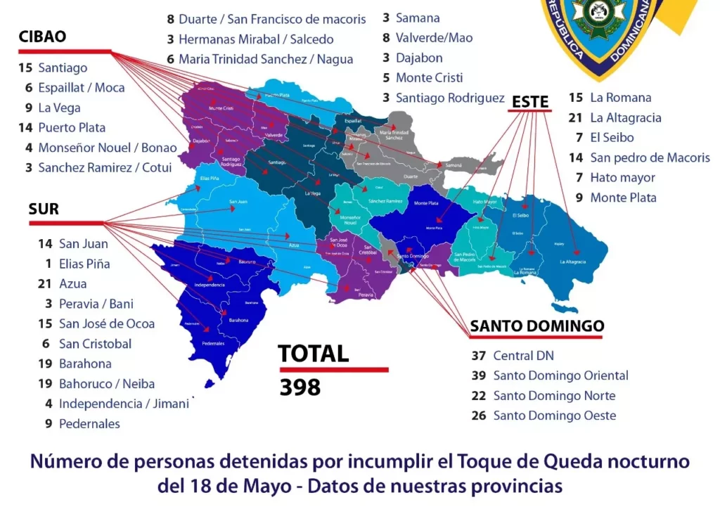 SANTO DOMINGO.-El operativo desplegado ayer lunes por las Fuerzas Armadas y la Policía para hacer cumplir el toque de queda, registró una disminución de un 52.22% en la cantidad de detenidos en comparación con días anteriores.
