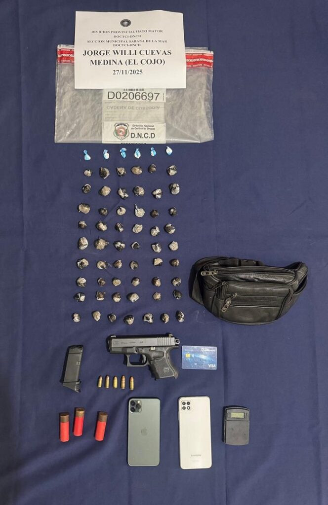 Santo Domingo.– La Dirección Nacional de Control de Drogas (DNCD), en coordinación con miembros del Ministerio Público, arrestó a un reconocido microtraficante identificado como Jorge Willi Cuevas Medina, alias El Cojo, durante un allanamiento realizado en el municipio de Sabana de la Mar, provincia Hato Mayor.