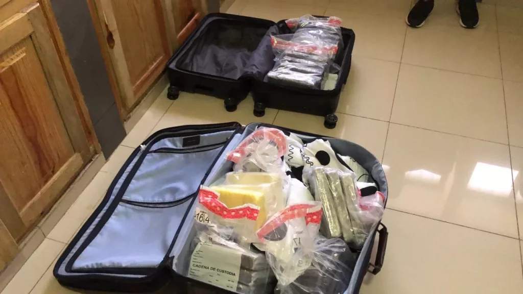 Santo Domingo.- Agentes de la Dirección Nacional de Control de Drogas (DNCD) y miembros del Ministerio Público se incautaron más de 23 paquetes de cocaína durante un operativo en la avenida Simón Bolívar, casi esquina Winston Churchill, próximo a una torre de apartamentos, cuando sorprendieron a dos hombres tratando de abordar un vehículo con dos maletas.