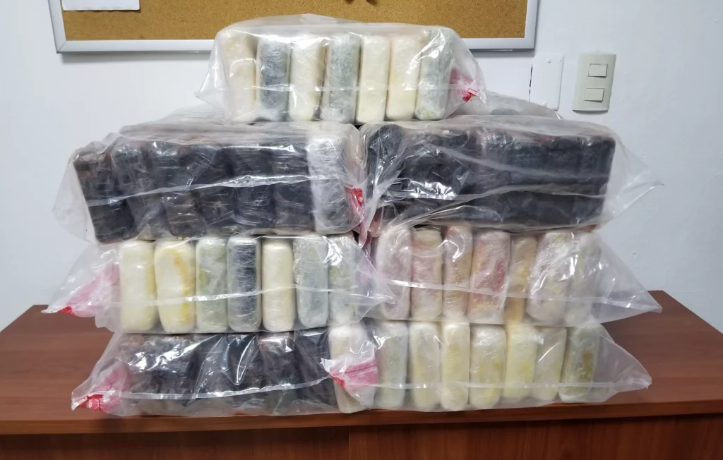 Precisó que de los 91 paquetes decomisados, 89 dieron positivo a cocaína y tuvieron un peso de 91.11 kilogramos, mientras los dos restantes, resultaron negativos a sustancias controladas, según determinó en su análisis el Instituto Nacional de Ciencias Forenses (INACIF).