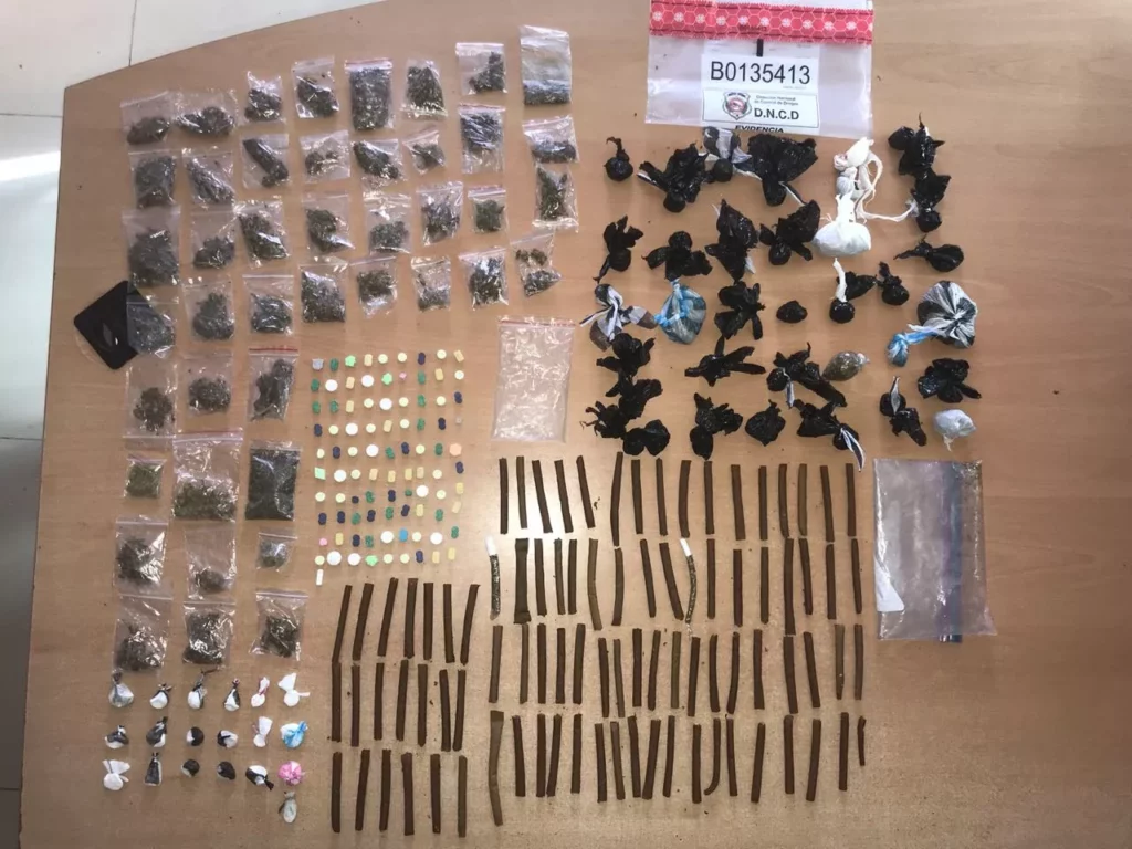 Las autoridades ocuparon cientos de porciones presumiblemente cocaína, marihuana y crack, así como decenas de pastillas de éxtasis, hookahs electrónicas, trituradoras, encendedores, entre otras evidencias.