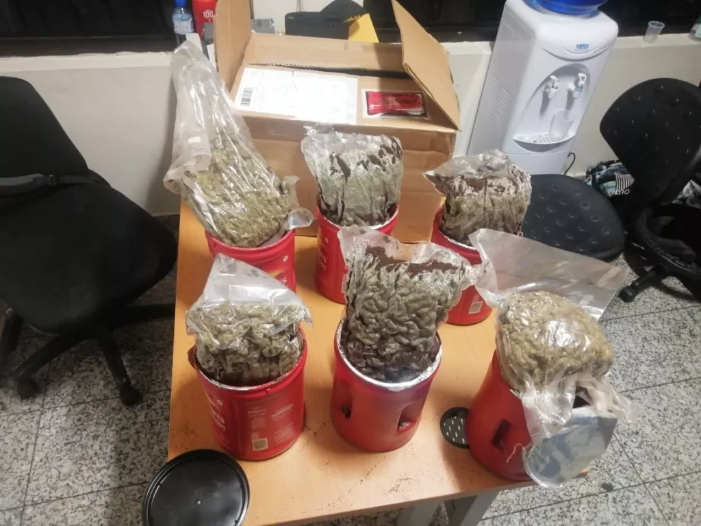 En presencia de un fiscal se procedió abrir la caja, donde se encontraron seis envases de plástico, que simulaban ser de café y en cuyo interior se ocuparon seis paquetes de marihuana, con un peso preliminar de ocho libras.