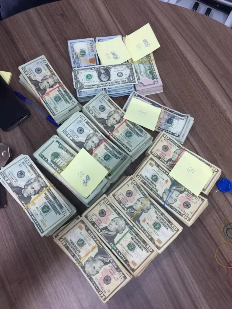 Tras varias horas de búsqueda se encontraron escondidos en el área del piso, cuatro paquetes envueltos en plastico transparente conteniendo los fardos del dinero antes mencionado.