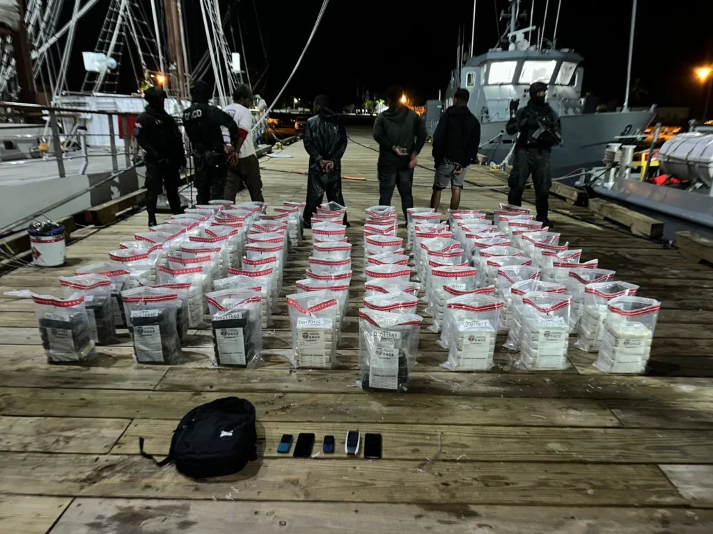 Inmediatamente, las unidades actuantes iniciaron una extensa labor de búsqueda y rastreo, logrando rescatar a los ocupantes de la lancha, así como recuperar 23 sacos conteniendo en su interior los 532 paquetes presumiblemente cocaína y otras 11 pacas de marihuana.