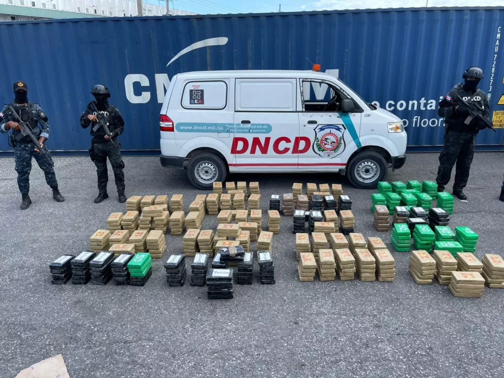 En un primer operativo, agentes antinarcóticos y efectivos militares, con la cooperación de la Policía de Colombia y organismos internacionales, fueron perfilados varios contenedores de tránsito por el país, tras llegar al puerto de Caucedo procedente de Cartagena.