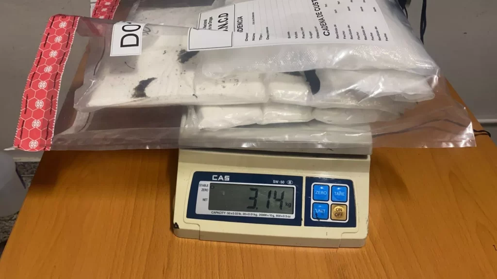 Santo Domingo. – La Dirección Nacional de Control de Drogas (DNCD) con apoyo del Cuerpo Especializado de Seguridad Aeroportuaria y bajo la coordinación del Ministerio Público, ocuparon más de tres kilos presumiblemente cocaína, en el Aeropuerto Internacional de las Américas JFPG.
