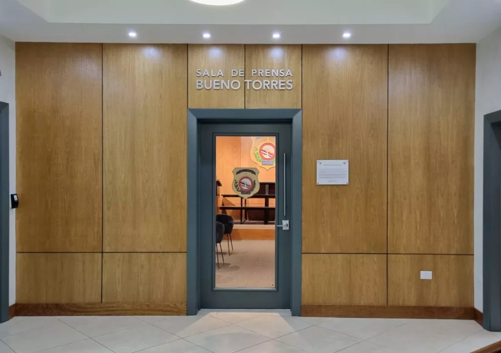 A partir de ahora los comunicadores que cubren la fuente de la DNCD tendrán más facilidades y comodidad en el Salón “Bueno Torres” con buena iluminación, sonido, y pantallas QLED para transmisión e imágenes.