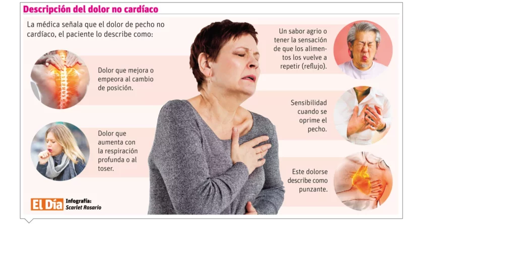La médica plantea que dentro de las causas comunes de dolor de pecho incluyen dolor como resultado de una herida o distensión en articulaciones o músculos.